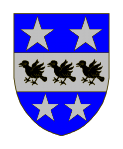 D’azur à la fasce d’argent chargé de trois canettes (ou oiseaux essorants) de sable accompagnée de quatre étoiles du même, deux en chef, deux en pointe.