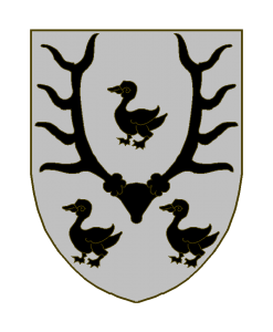 D’argent au massacre de cerf de sable, accompagné de trois canettes mal ordonnées du même.