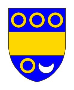 D’azur à la fasce d’or accompagnée de quatre annelets du même, trois en chef, un en pointe, un croissant montant sénestrant l’annelet de la pointe