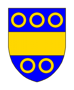 D’azur à la fasce d’or, accompagnée de cinq annelets du même, trois en chef, deux en pointe.