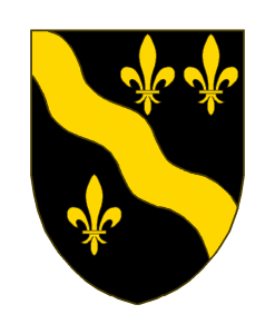de sable à la bande ondée d’or accompagnée de trois fleurs de lis du même.