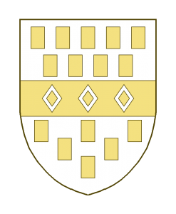Une fasce accompagnée de quinze billettes, neuf en chef, 5-4, six en pointe, 3-2-1,la fasce chargé de trois macles.