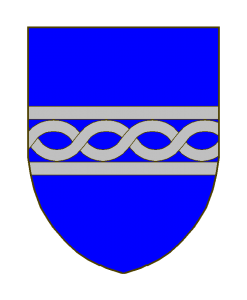 D’azur à deux trangles ondées se croisant en tortil d’argent, en fasce, entre deux cotices en fasce du même.