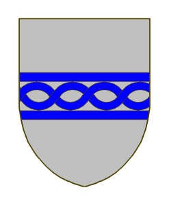 D’argent à deux trangles ondées se croisant en tortil d’azur, en fasce, entre deux cotices en fasce du même.