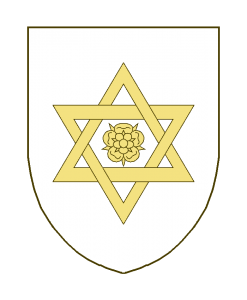 Deux triangles vidés, passés l’un dans l’autre, ayant en coeur une rose.