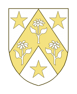 D’azur au chevron d’or chargé de trois écueilles ou girofles au naturel, et accompagné de trois étoiles à six rais d’or.