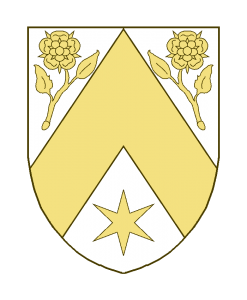 Un chevron, accompagné en chef de deux roses, tigées et feuillées, en pointe d’une étoile à six rais.