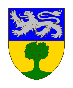 Coupé, en chef d’azur au lion passant (D’argent ou d’or ?), en pointe d’or à l’arbre au naturel, terrassé de (sinople?).
