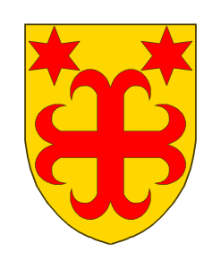 D’or à la croix ancrée de gueules, accompagnée en chef de deux étoiles du même.