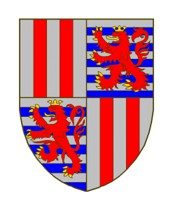 Écartelé: aux I et IV d’argent à deux pals de gueules, aux II et III burelé d’argent et d’azur, au lion brochant de gueules, armé, lampassé et couronnés d’or.