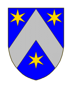 D’azur au chevron d’argent accompagné de trois étoiles à six rais d’or, posées 2 et 1.