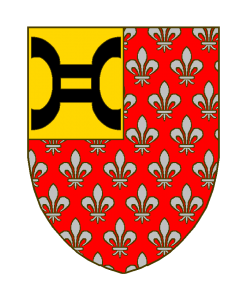 De gueules semé de fleurs de lis d’argent, au franc-quartier d’or à une anille de sable.