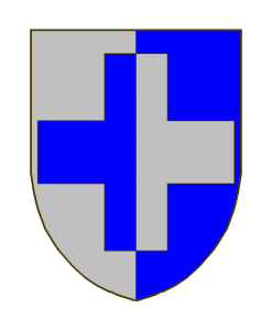 Parti d’argent et d’azur, à la croix alésée de l’un en l’autre.