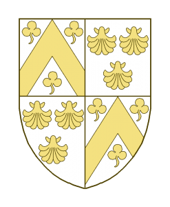 Écartelé: aux I et IV un chevron accompagné de trois trèfles, aux Il et III trois coquilles.