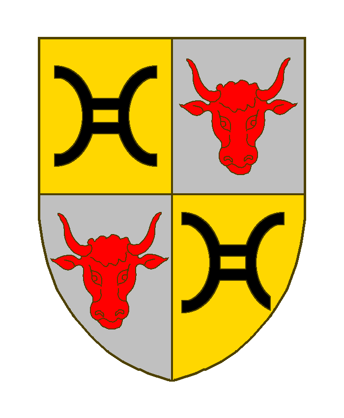 Mesnil Sizes: 150 × 150 / 247 × 300 / 700 × 850 du Mesnil Armes: Écartelé: aux I et IV d’or à l’anille de sable, aux Il et III d’argent au rencontre de boeuf de gueules. Casque couronné. Cimier: Un écureuil croquant une noix. Sources du Dr. Loutsch: (Gourdet/T. V. P. 422). Zitiert nach (Quelle): A.L. Seite 572