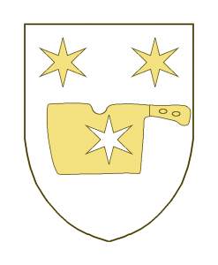 Un hachoir de boucher mis en fasce chargé d’une étoile à six rais, et surmonté de deux étoiles à six rais.
