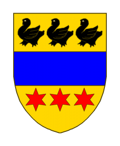 D’or à la fasce d’azur, accompagnée en chef de trois merlettes de sable, en pointe de trois étoiles à six rais de gueules.