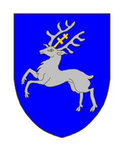 D’azur au cerf courant d’argent, portant entre les deux cornes une croix de Lorraine d’or.