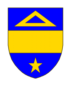 D’azur à la fasce d’or, accompagnée en chef d’une équerre d’or, en pointe d’une étoile à cinq rais du même.