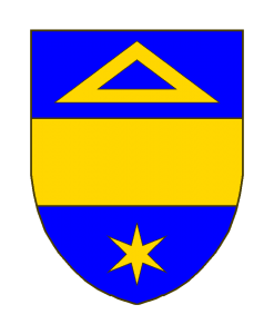 D’azur à la fasce d’or, accompagnée en chef d’une équerre d’or, en pointe d’une étoile à six rais du même.