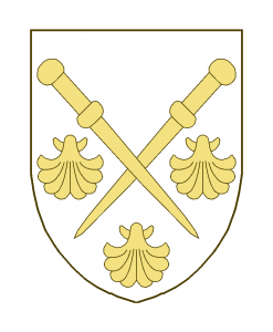 Deuxbourdons de pèlerin en sautoir, accompagnés de trois coquilles, deux aux flancs, une en pointe.