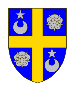 D’azur à la croix d’or cantonnée aux I et IV d’un croissant surmonté d’une étoile, aux II et III d’une rose,le tout d’argent.
