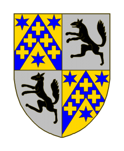 Écartelé: aux I et IV d’or au chevron d’azur chargé de cinq croisettes d’or et accompagné de trois étoiles à six rais d’azur, aux II et III d’argent au renard de sable, qui est Xivry.