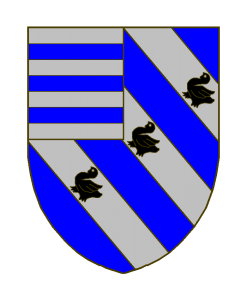 D’azur à trois bandes d’argent chargées chacune d’une merlette de sable (posée en barre), au franc-quartier d’argent à trois fasces d’azur.