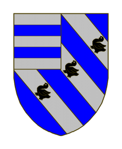 D’azur à trois bandes d’argent chargées chacune d’une merlette de sable (posée en barre), au franc-quartier d’argent à deux fasces d’azur.