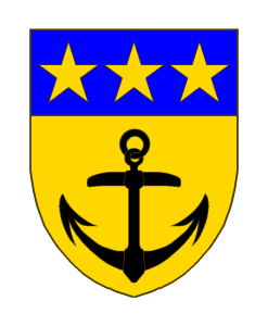 D’or à une ancre de sable, l’anneau en haut, au chef d’azur chargé de trois étoiles d’or.
