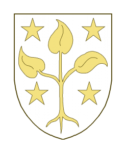 Un plant de trois feuilles arraché, accompagné de quatre étoiles, deux en chef, deux en pointe.