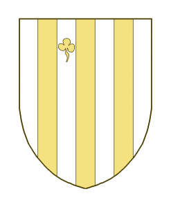 Trois pals, accompagnés en chef entre les deux premiers, d’un trèfle tige.