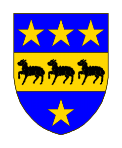 D’azur à la fasce d’or chargé de trois agneaux de sable, et accompagnée de quatre étoiles d’or, trois en chef, une en pointe.