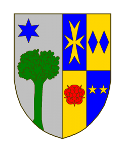 Parti au I d’argent à l’arbre de sinople accompagné en chef à dextre d’une étoile à six rais d’azur, au II Écartelé: 1) d’azur à une croix de Malte d’or, au 2) d’or à deux losanges d’azur, au 3) d’or à une rose ou quintefeuille de gueules, au 4) d’azur à deux étoiles d’or.