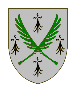 D’argent à deux palmes de sinople posées en sautoir, cantonnées de quatre mouchetures d’hermines de sable.