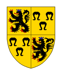Écartelé: aux I et IV d’or au lion de sable, armé et lampassé de gueules,couronnés d’azur, aux II et III d’or à trois fers à cheval de sable, les bouts en bas,cloutés d’argent.