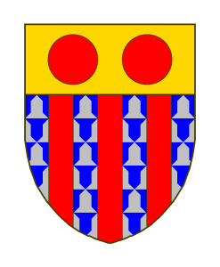 De vair à trois pals de gueules, au chef d’or chargé de deux tourteaux de gueules (parfois, entre les tourteaux, une étoile ou une tour de sable, comme brisure).