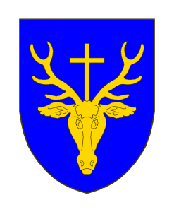 D’azur au rencontre de cerf d’or, entre les bois duquel une croix du même.