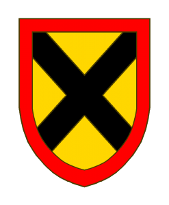 D’or au sautoir de sable, à la bordure de gueules.