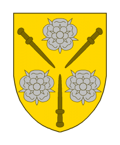 D’or à trois bourdons de pèlerin au naturel posés en pairle, cantonnés de trois roses d’argent.