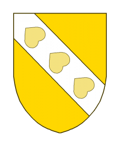 D’or à la bande chargé de trois coeurs renversés posés dans le sens de la bande.
