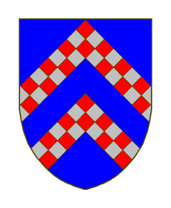 D’azur à deux chevrons échiquetés (ou losangés) de gueules et d’argent.