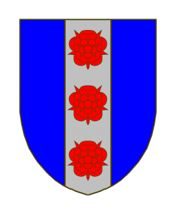 D’azur au pal d’argent chargé de trois roses de gueules.
