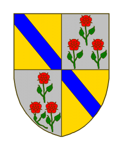Écartelé: aux I et IV d’argent à la bande d’azur, aux Il et III d’argent à trois roses mal ordonnées de gueules, tigées et feuillées de sinople.