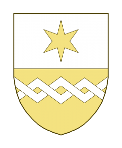 Coupé, en chef une étoile à six rais, en pointe deux trangles vivrées entrelacées en fasce.