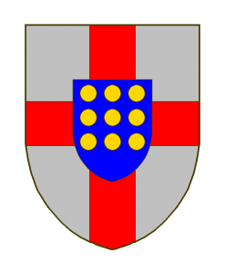 Blason:D'argent à la croix de gueules, à l'écusson brochant en coeur d'azur à neuf besants d'or, posés 3 - 3 - 3.