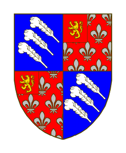 Écartelé: aux I et IV d’azur à trois plumes d’autruche posées en bande, aux II et III de gueules semé de fleurs de lis d’argent, au franc-quartier de gueules au lion d’or.Sources du Dr. Loutsch: