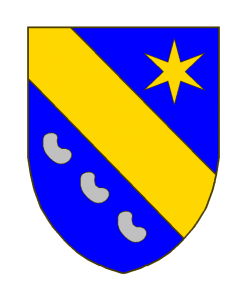 Staudt de Limbourg – variante 1 Sizes: 150 × 150 / 247 × 300 / 700 × 850 Staudt de Limbourg - variante 1 Armes: D’azur à la bande d’or, accompagnée en chef d’une étoile à six rais du même, en pointe de trois fèves d’argent rangées en bande. Sources du Dr. Loutsch: (H.L.T./S.L./S.A.R. III, P. 460). Zitiert nach (Quelle): A.L. Seite 743