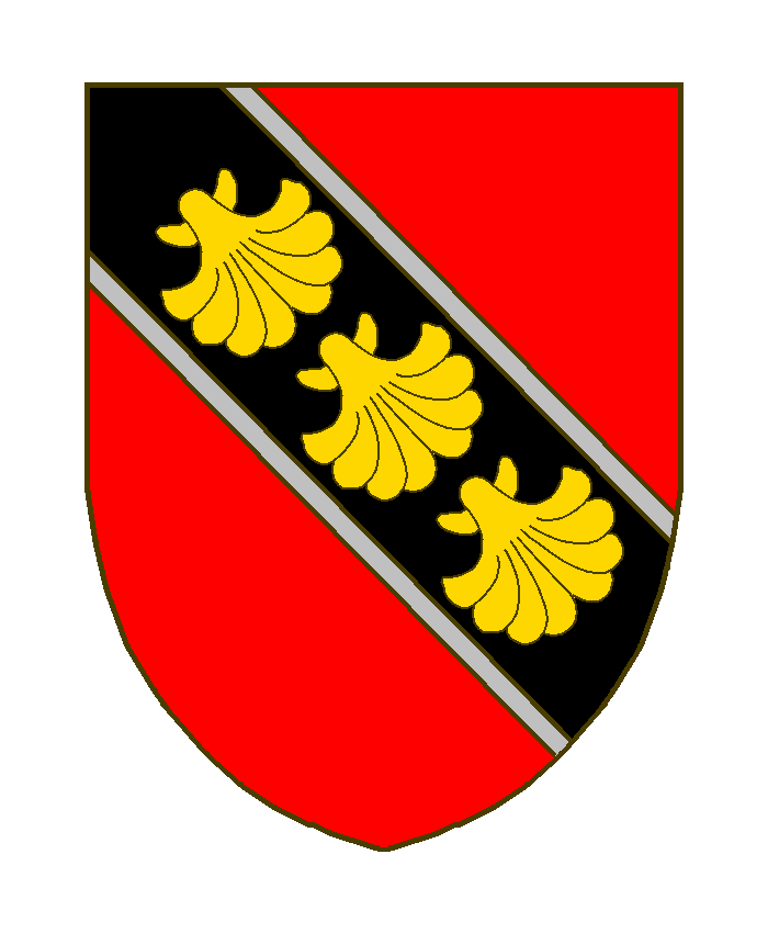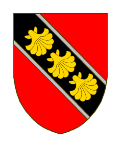 Sterpenich ou Sterpigny variante 1 Sizes: 150 × 150 / 247 × 300 / 700 × 850 de Sterpenich ou Sterpigny variante 1 Armes: De gueules à la bande de sable bordé d’argent, chargé de trois coquilles d’or. Cimier: Une tête de lion d’argent. Sources du Dr. Loutsch: (B./N.M./Gourdet/des R: Nicolas de St., 1612). Zitiert nach (Quelle): A.L. Seite 747