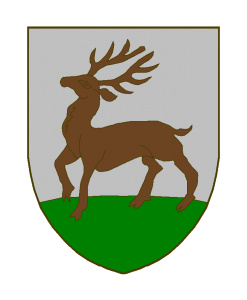 D’argent au cerf au naturel, posé sur une terrasse de sinople.